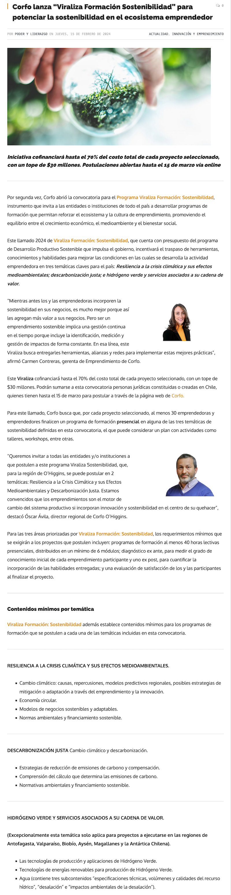 Postula al Programa Viraliza Formación de Corfo: Convocatoria que busca potenciar la sostenibilidad en el ecosistema emprendedor - (portalinnova.cl)