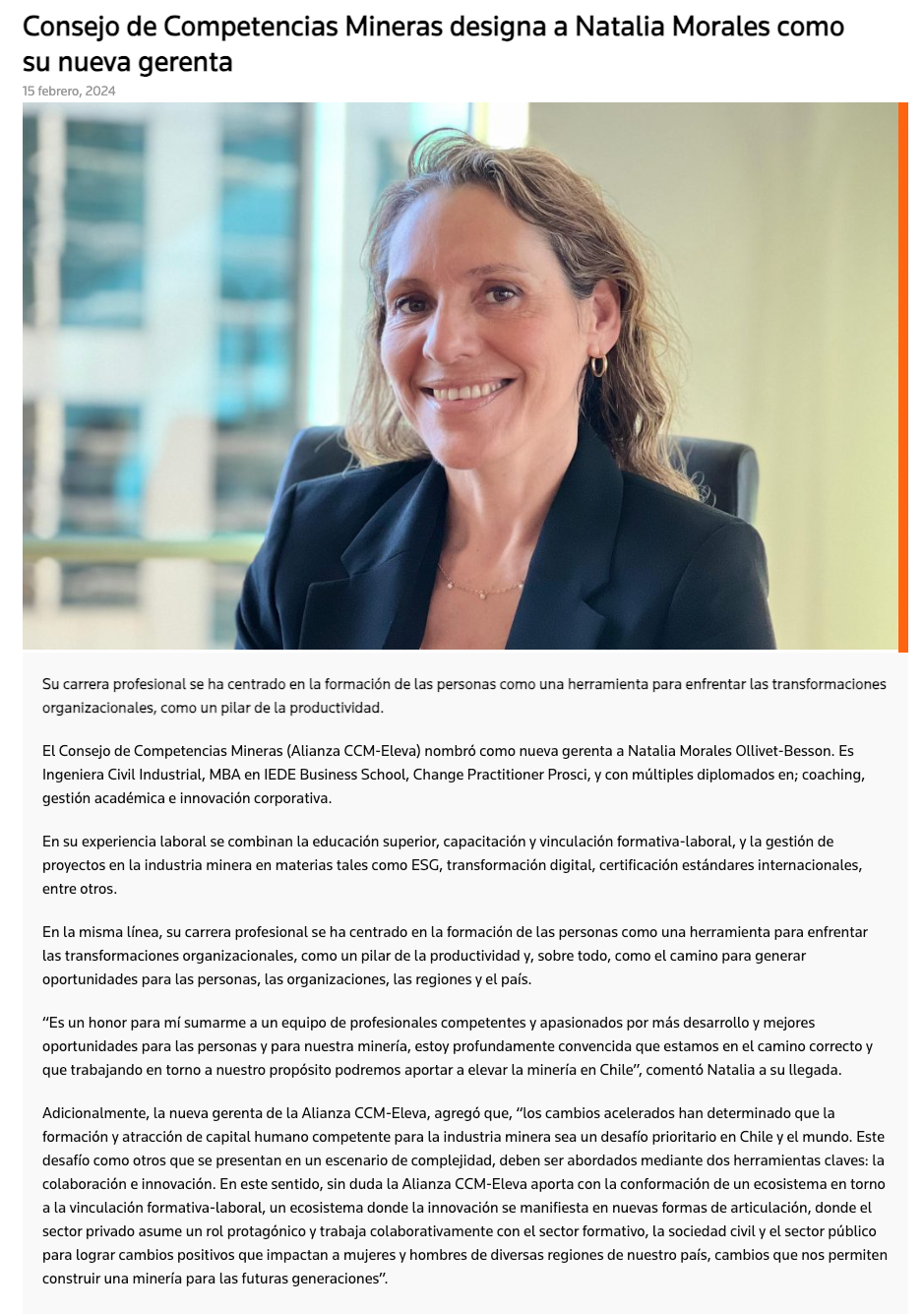 Consejo de Competencias Mineras designa a Natalia Morales como su nueva gerenta - (mvcomunicaciones.cl)