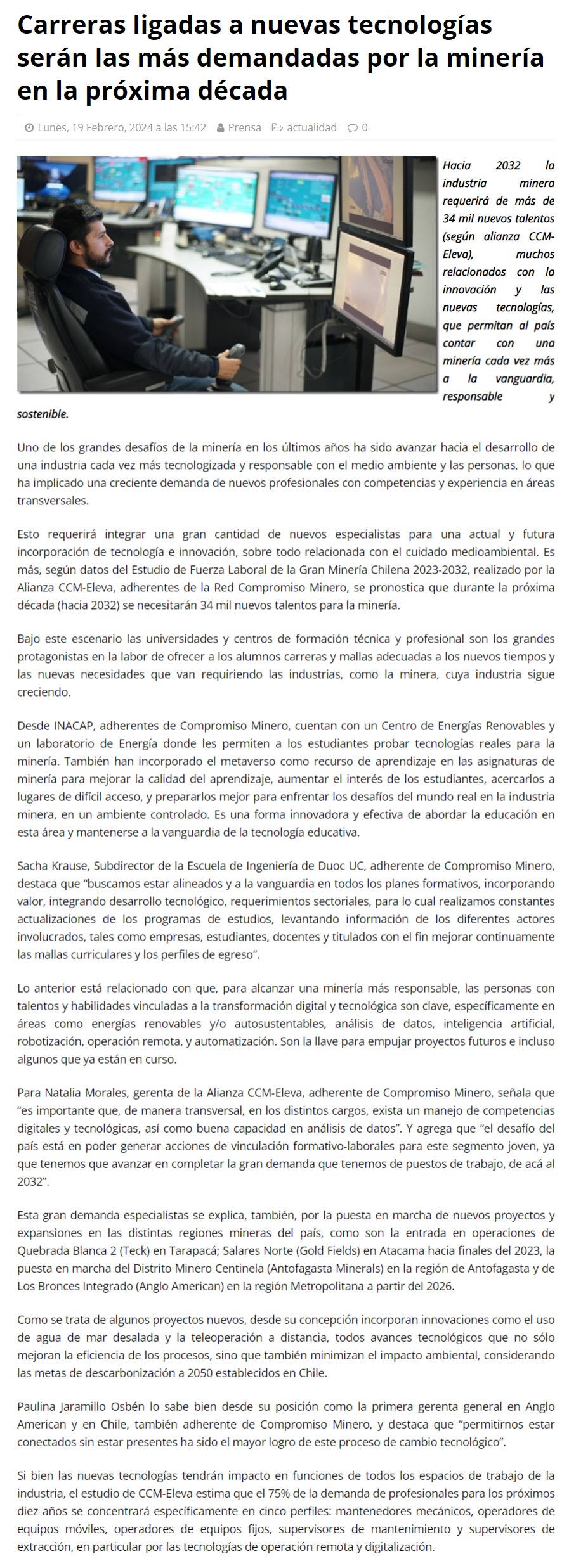 Carreras ligadas a nuevas tecnologías serán las más demandadas por la minería en la próxima década - (presslatam.cl)