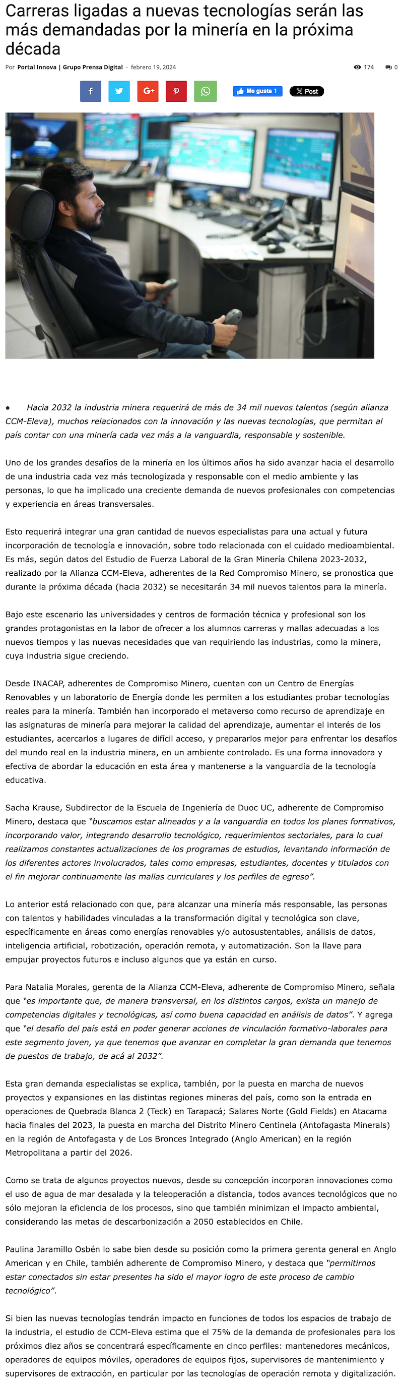 Carreras ligadas a nuevas tecnologías serán las más demandadas por la minería en la próxima década - (madero.cl)