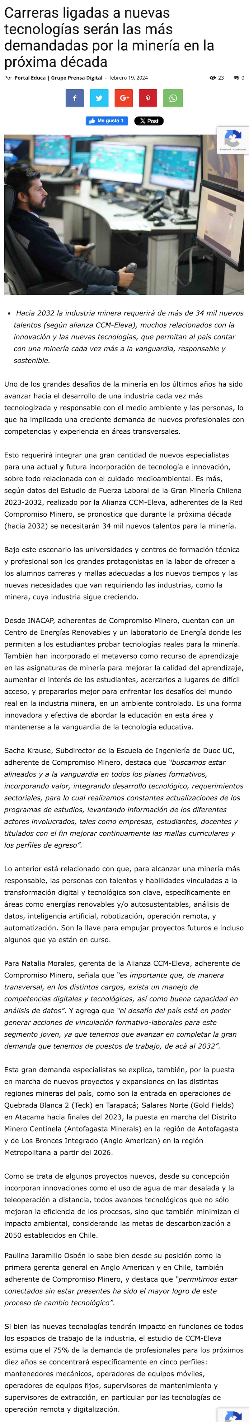 Carreras ligadas a nuevas tecnologías serán las más demandadas por la minería en la próxima década - (portalinnova.cl)