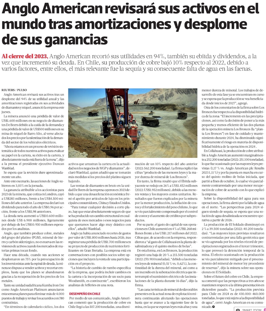 Anglo American revisará sus activos tras amortizaciones y desplome de sus ganancias - (DF Online)