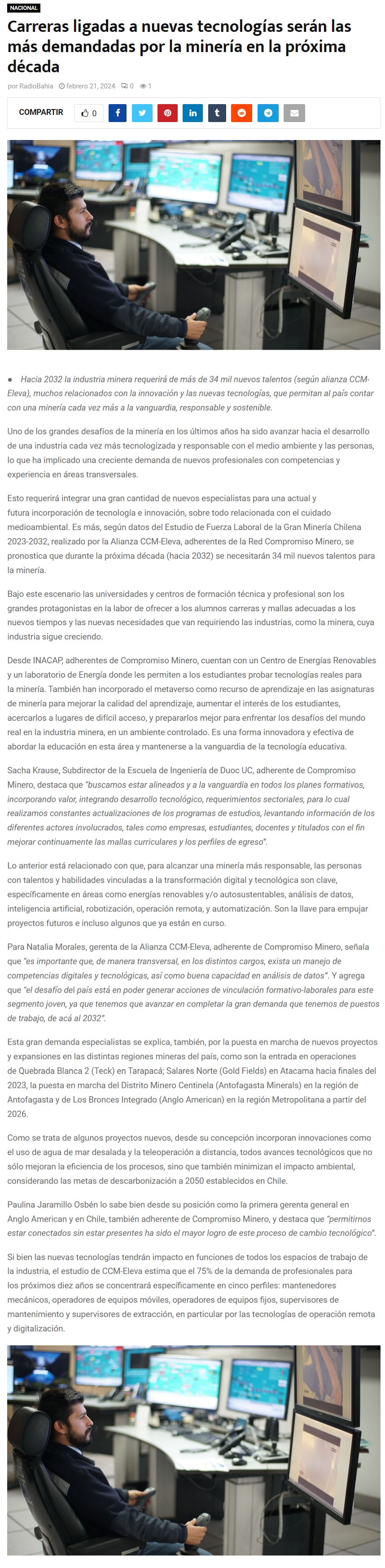 Carreras ligadas a nuevas tecnologías serán las más demandadas por la minería en la próxima década - (El Mostrador)