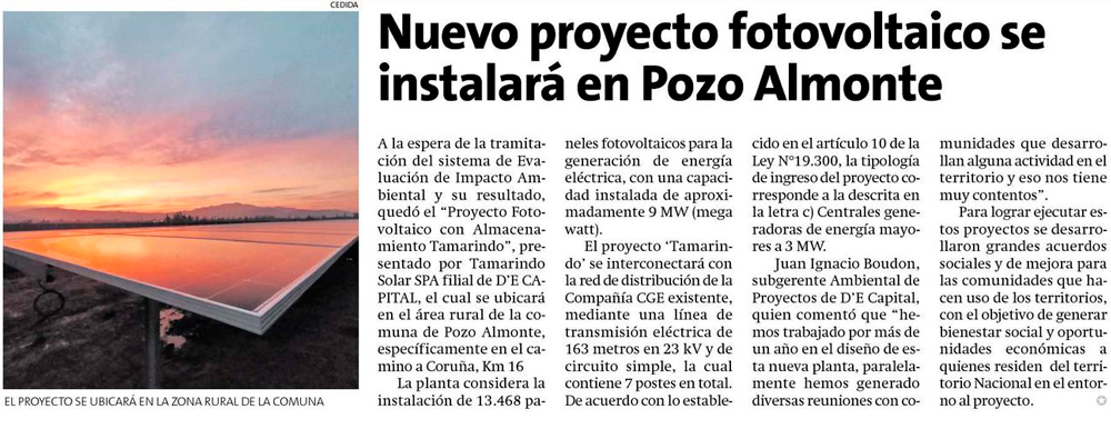 D’E Capital ingresa proyecto fotovoltaico al Servicio de Evaluación Ambiental - (elreporterodeiquique)
