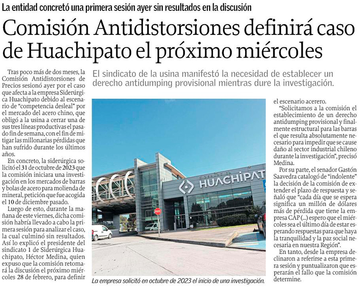Incertidumbre sigue en Huachipato: Comisión Antidistorsiones extiende decisión sobre salvaguardias al acero chino - (Diario Concepción)