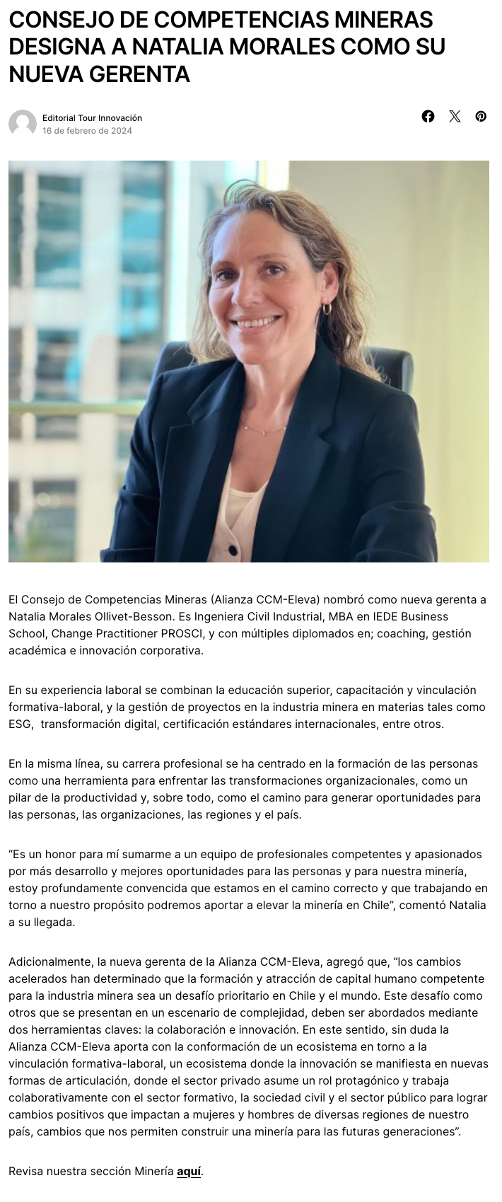 Consejo de Competencias Mineras designa a Natalia Morales como su nueva gerente - (guiaminera.cl)
