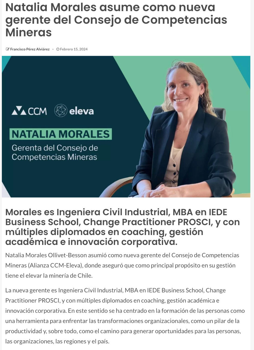 Consejo de Competencias Mineras designa a Natalia Morales como su nueva gerente - (guiaminera.cl)