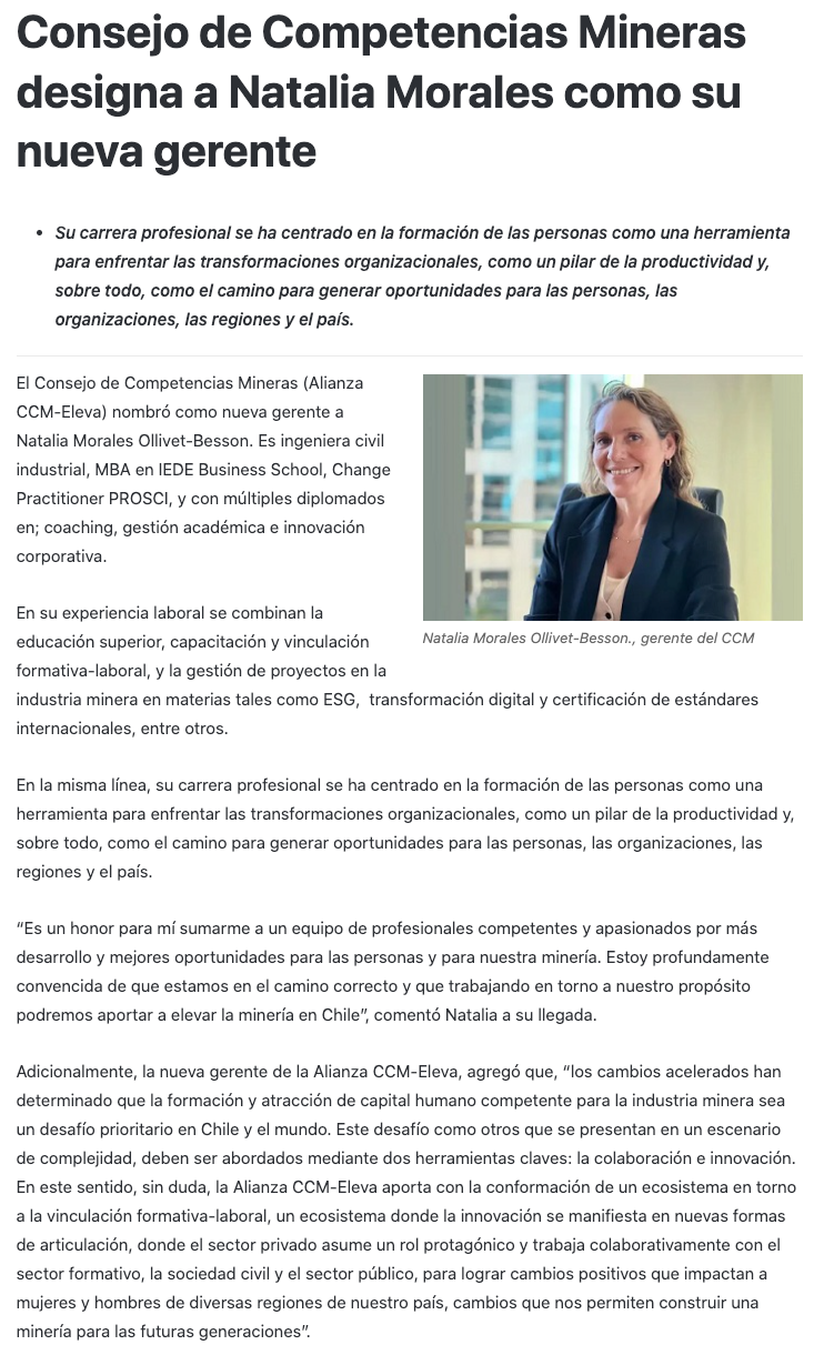 Consejo de Competencias Mineras designa a Natalia Morales como su nueva gerenta - (tourinnovacion.cl)
