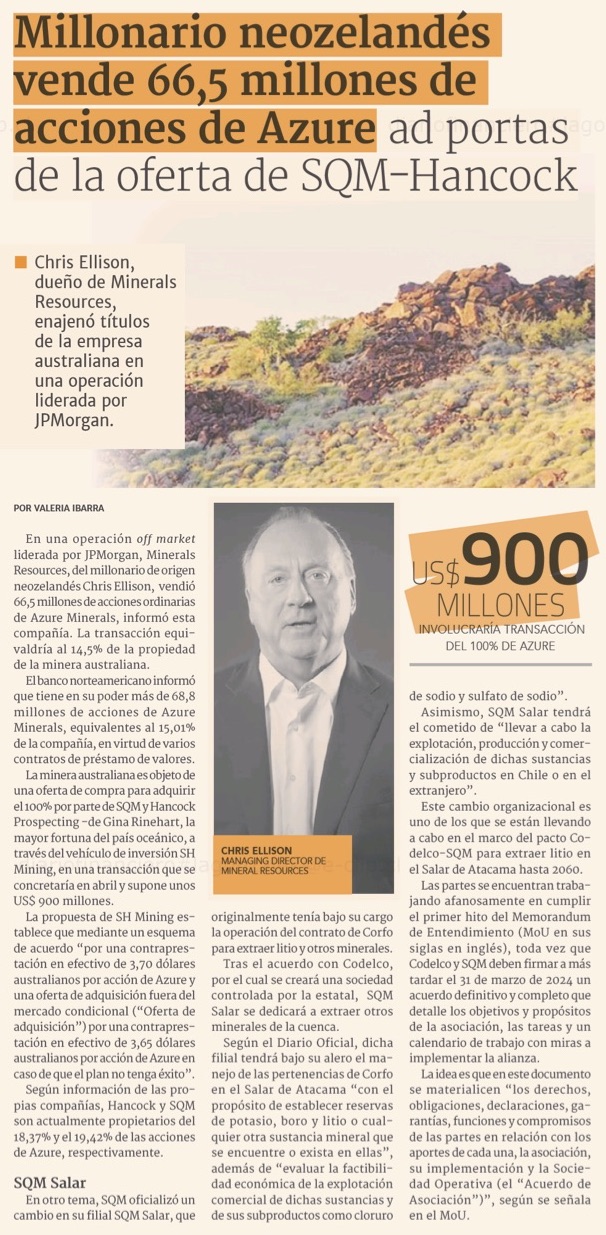 JP Morgan alcanza participación relevante en Azure Minerals y enciende alertas para SQM - (Pulso)