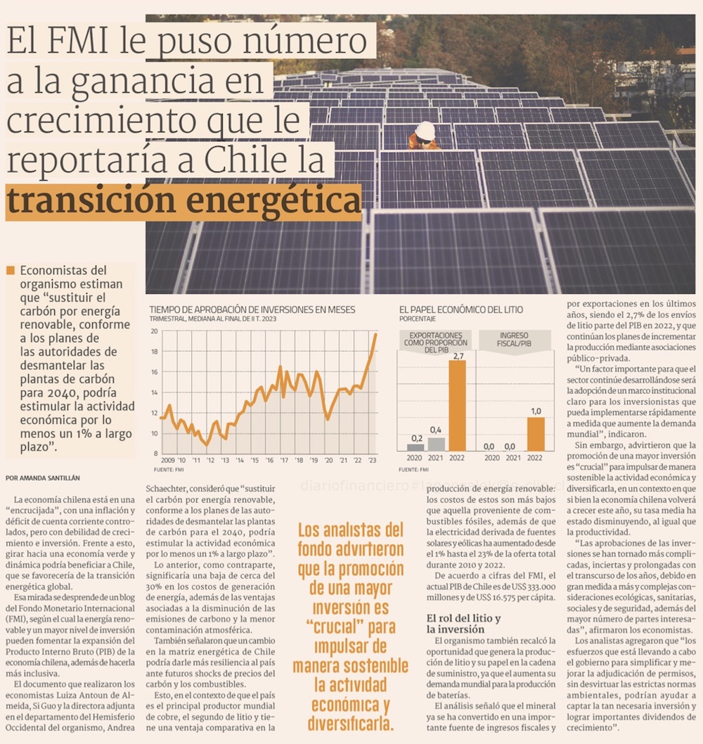 FMI le pone número a la ganancia en crecimiento que le reportaría a Chile a transición energética - (DF Online)