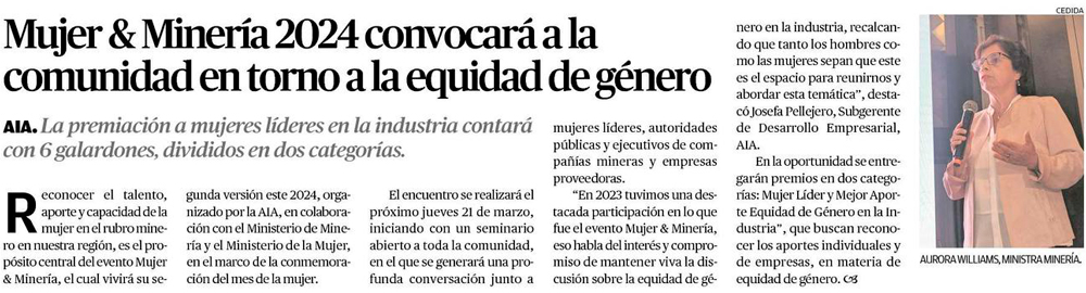 Asociación de Industriales premia a mujeres líderes de la industria minera - (El Mercurio de Calama)