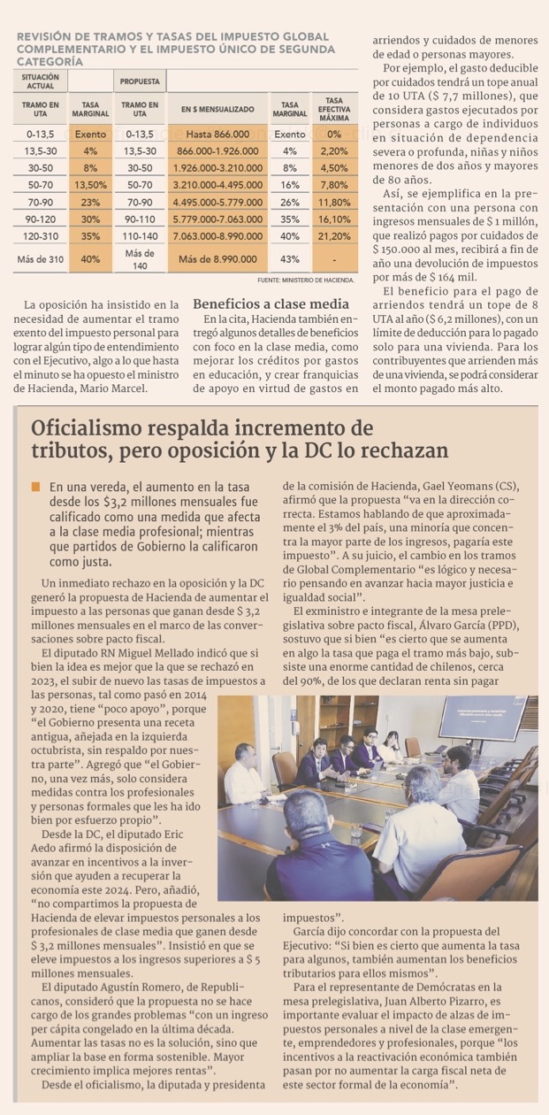 Pacto fiscal: Hacienda propone subir impuestos personales desde el tramo que tiene ingresos por $3,2 millones al mes - (Pulso)
