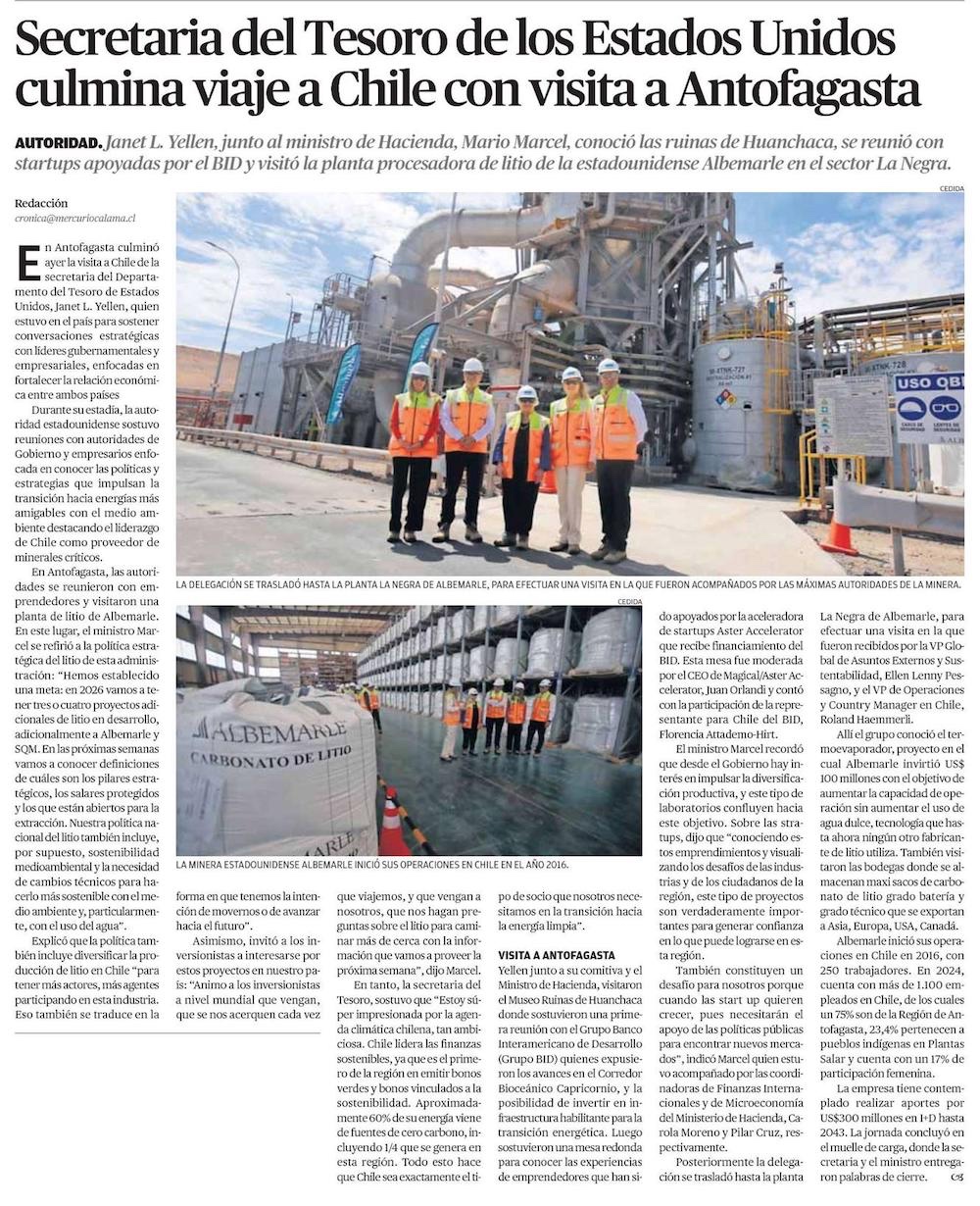 Secretaria del Tesoro de EE.UU destacó el potencial regional en energías renovables - (El Mercurio de Antofagasta)