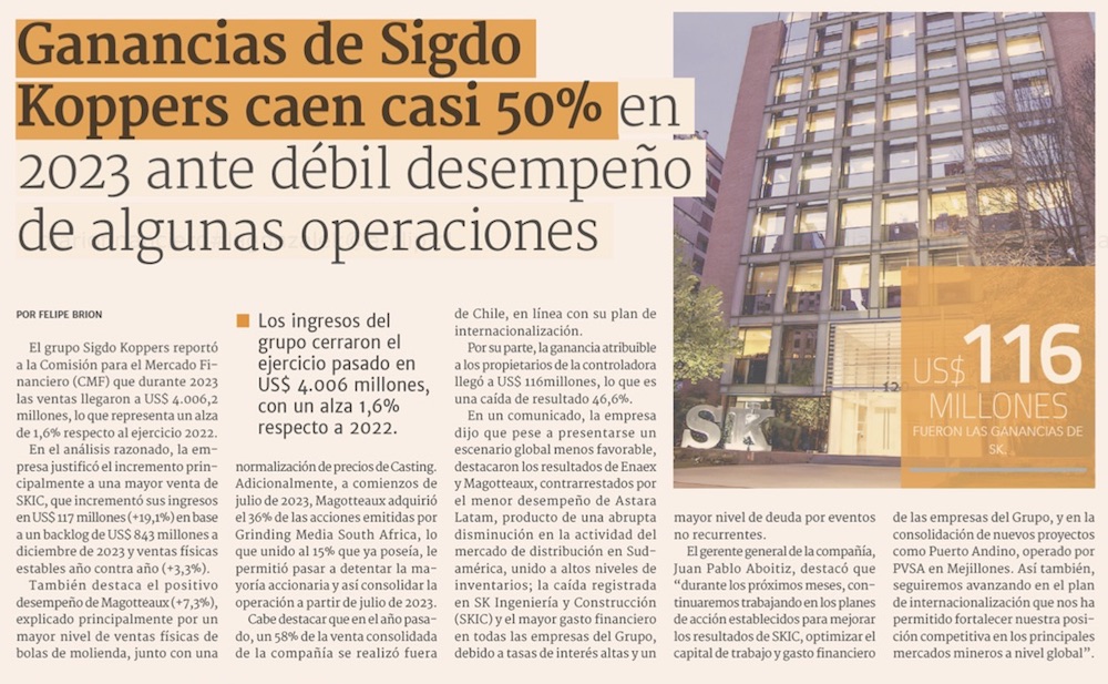 Ventas de Sigdo Koppers aumentan 1,6% y suman USD 4.006 millones a diciembre de 2023 - (portalportuario)