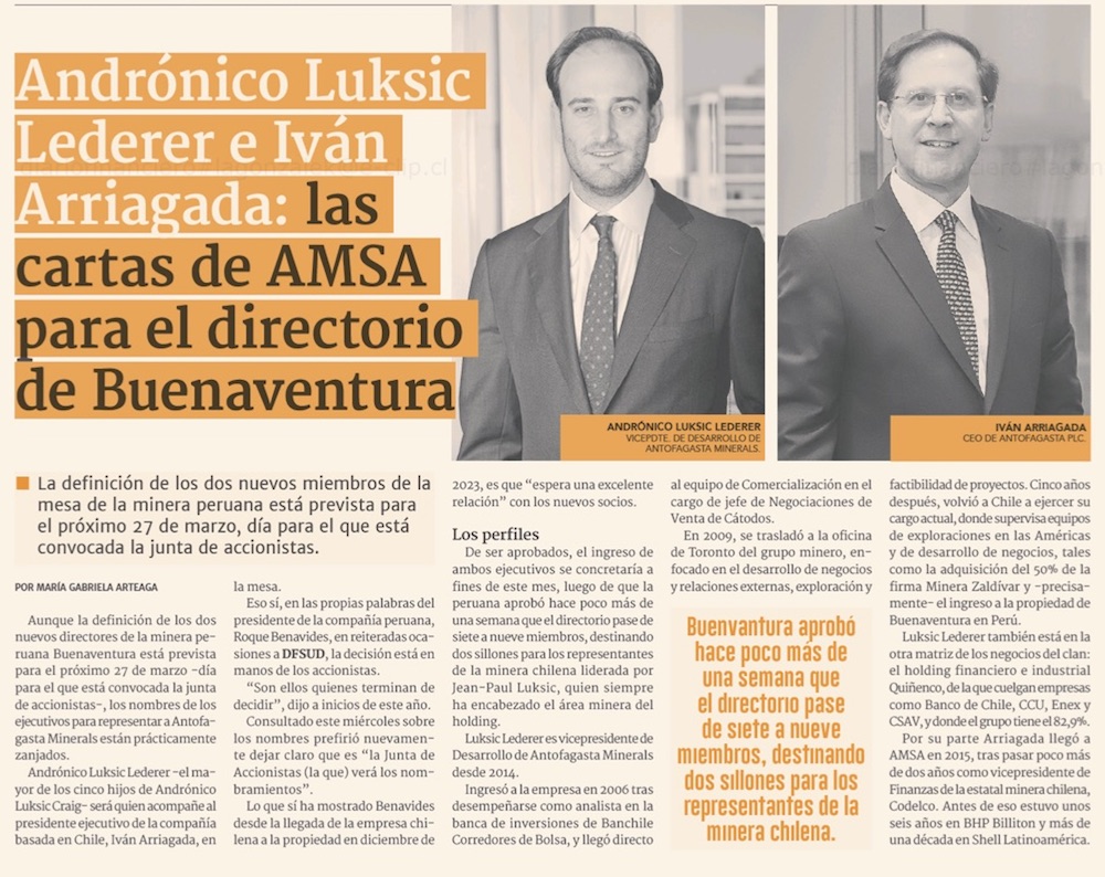 Andrónico III, el emisario de la familia Luksic al directorio de minera peruana Buenaventura - (Pulso)