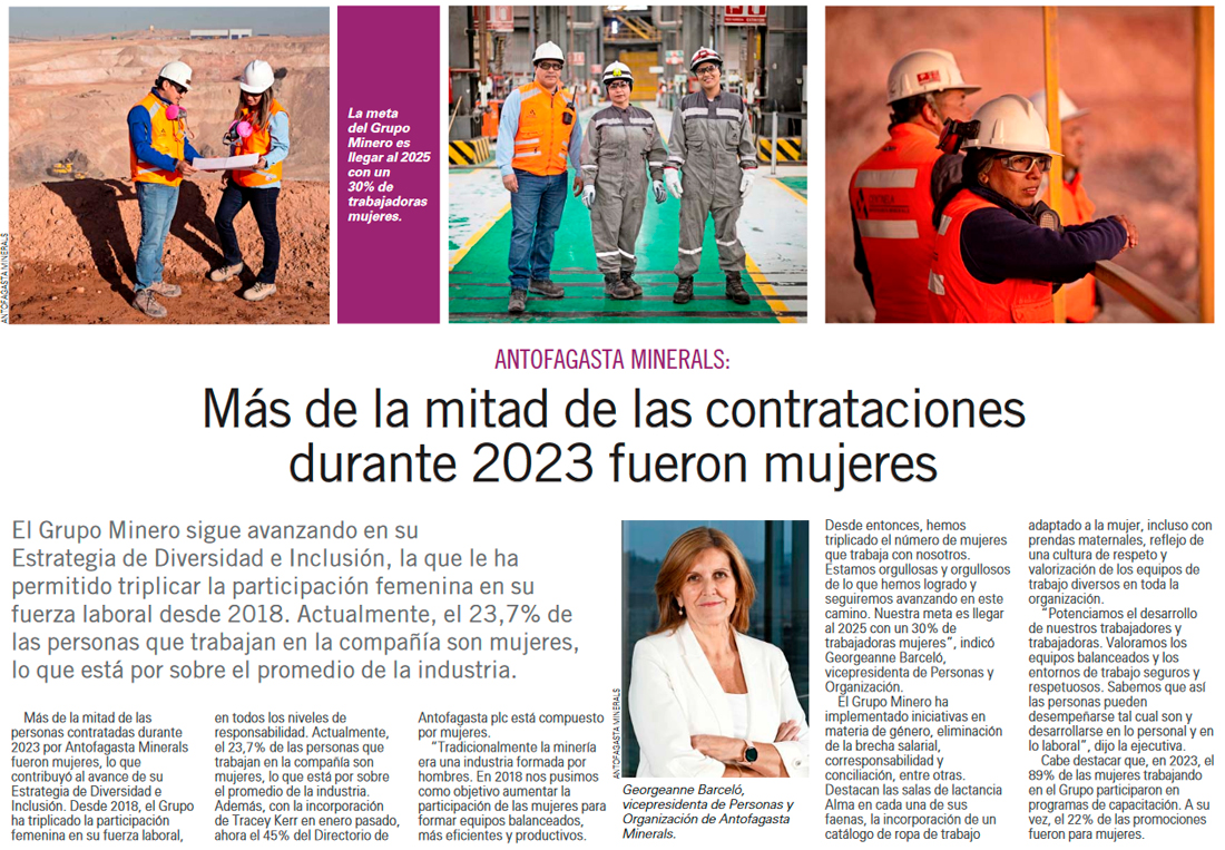Más de la mitad de las contrataciones de Antofagasta Minerals durante 2023 fueron mujeres - (madero.cl)