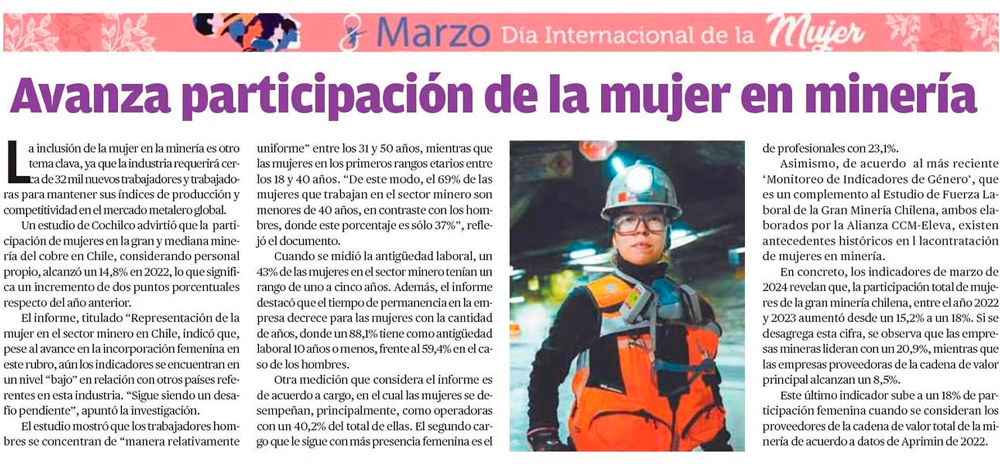 Avanza participación de la mujer en minería, pero la meta es tener cifras de países referentes - (El Mercurio de Antofagasta)