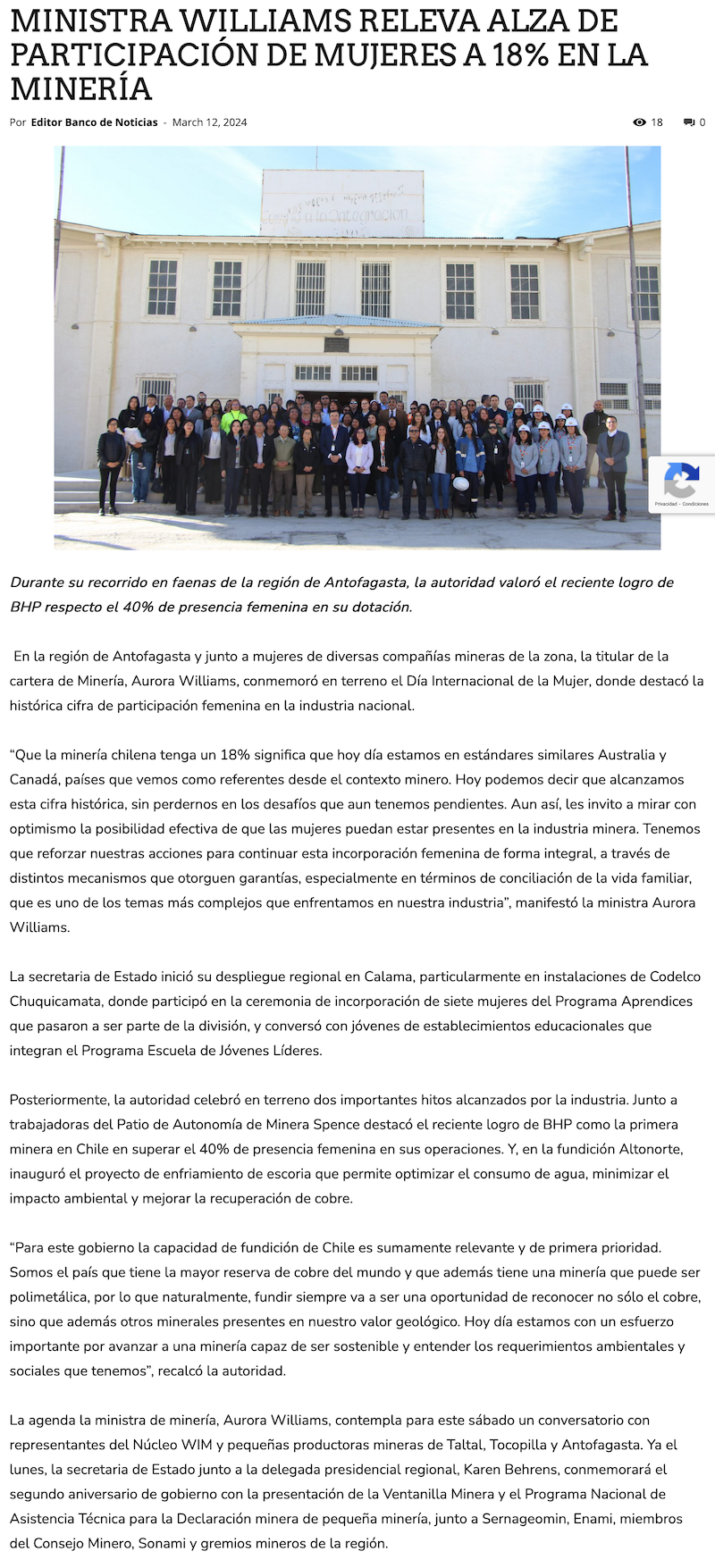 Ministra Williams releva alza de 18% de participación de mujeres en la minería - (portalVallenarDigital.cl)