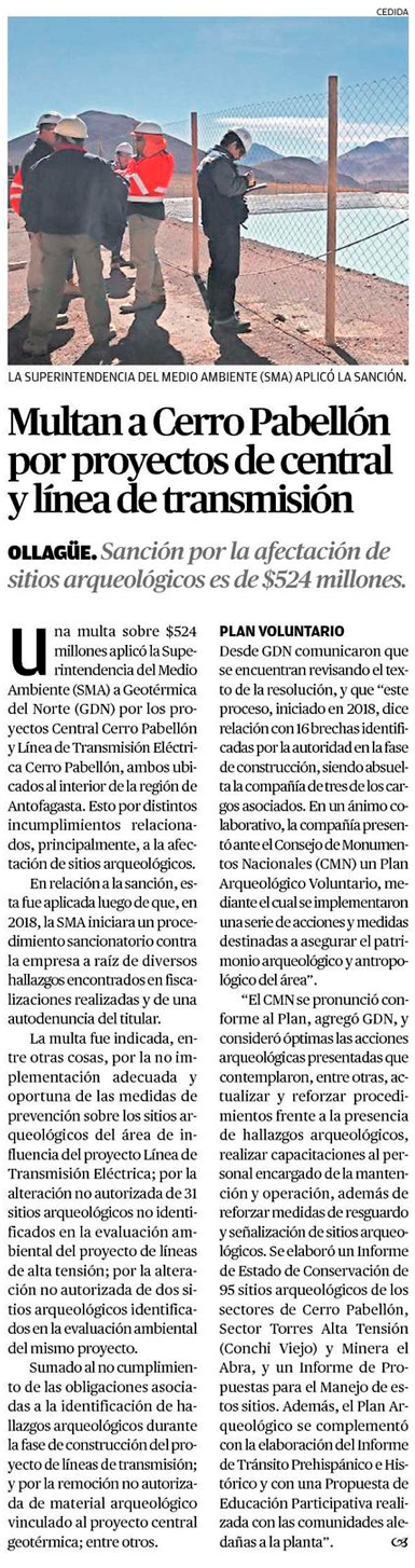 SMA multa a Geotérmica del Norte por proyectos que cayeron en afectación a sitios arqueológicos - (biobiochile online)