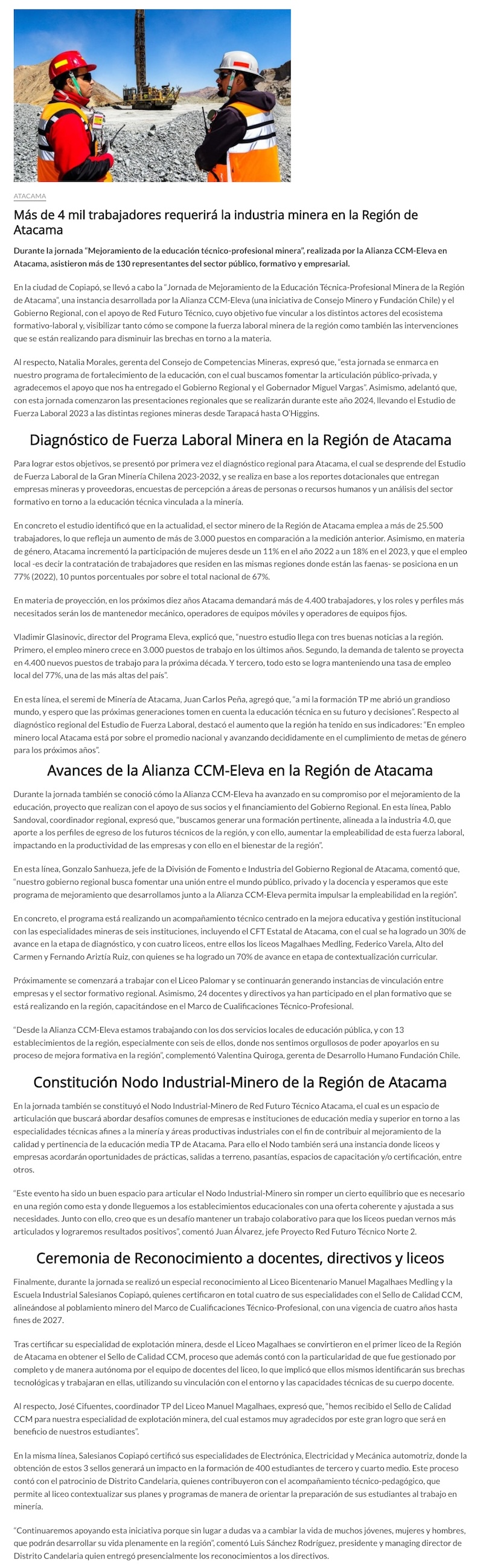 Más de 4 mil trabajadores requerirá la industria minera en la región de Atacama - (kristinaradio.cl)