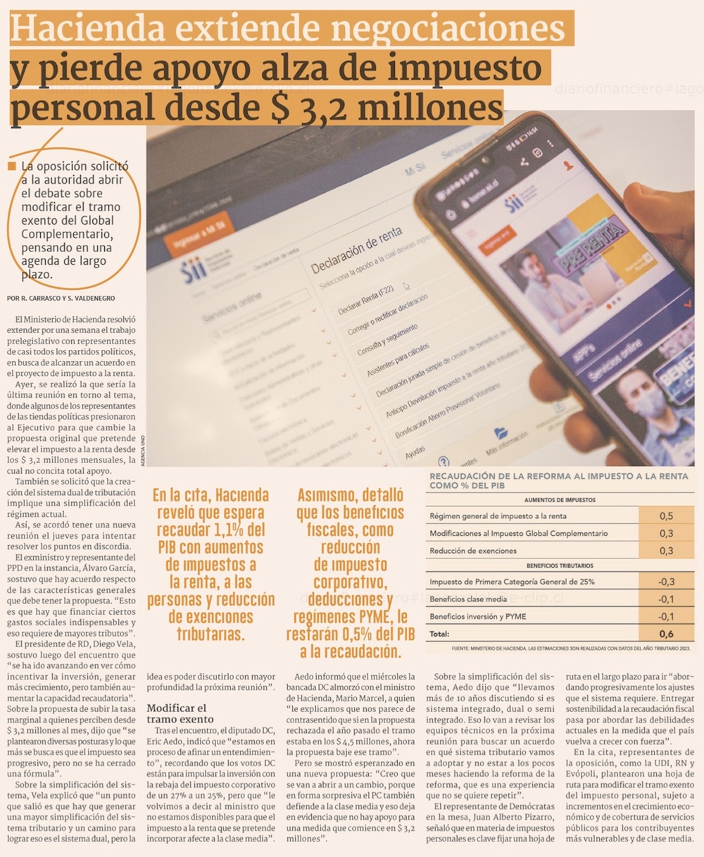 Hacienda prolonga conversaciones con partidos ante falta de acuerdo en impuesto a personas - (El Mercurio de Santiago)