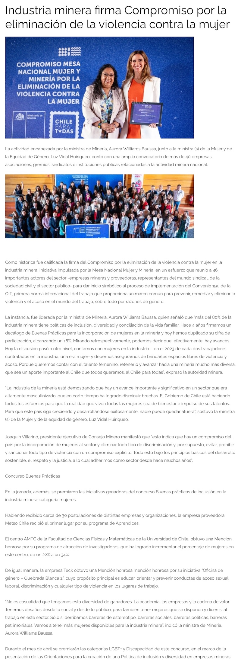 Industria minera firma Compromiso por la eliminación de la violencia contra la mujer - (hvaradio.cl)