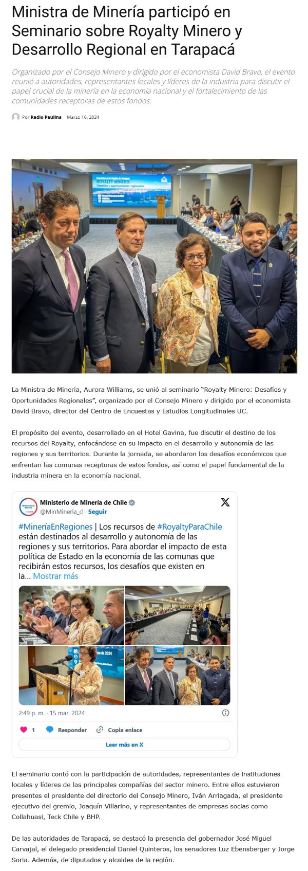 Ministra Williams aborda impacto de royalty minero en el desarrollo regional - (Nostálgica Online)