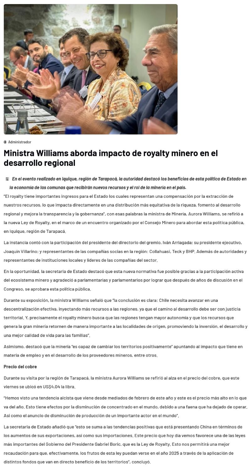 Ministra Williams aborda impacto de royalty minero en el desarrollo regional - (Nostálgica Online)