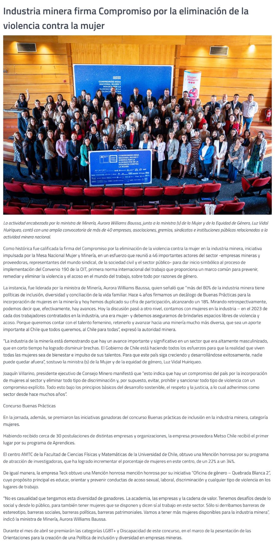 Industria minera firma Compromiso por la eliminación de la violencia contra la mujer - (hvaradio.cl)