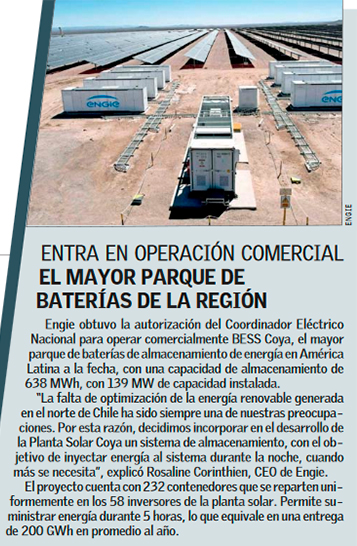 La planta de almacenamiento más grande de Latinoamérica inició operación comercial en Antofagasta - (Pulso)