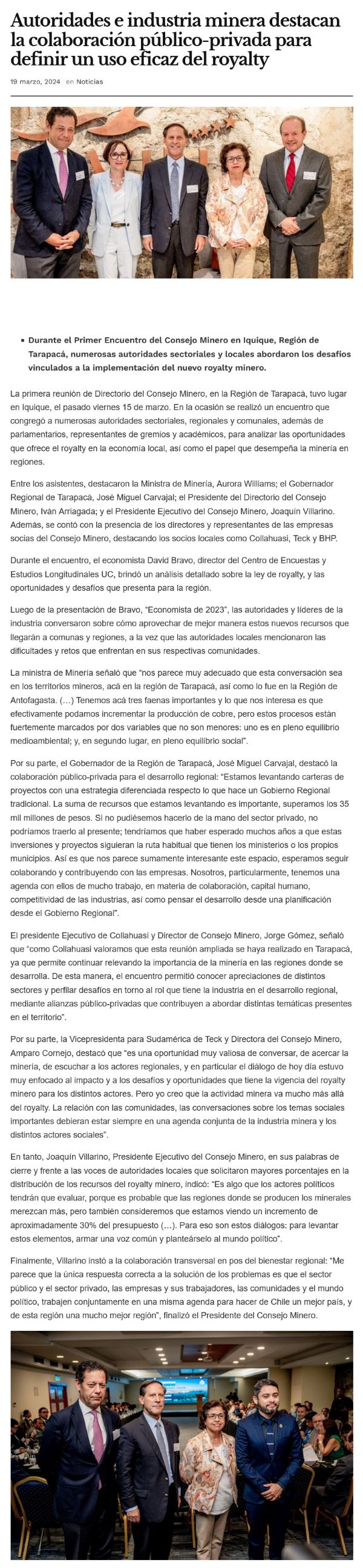 Autoridades e industria minera destacan la colaboración público-privada para definir un uso eficaz del royalty - (elsoldeiquique)