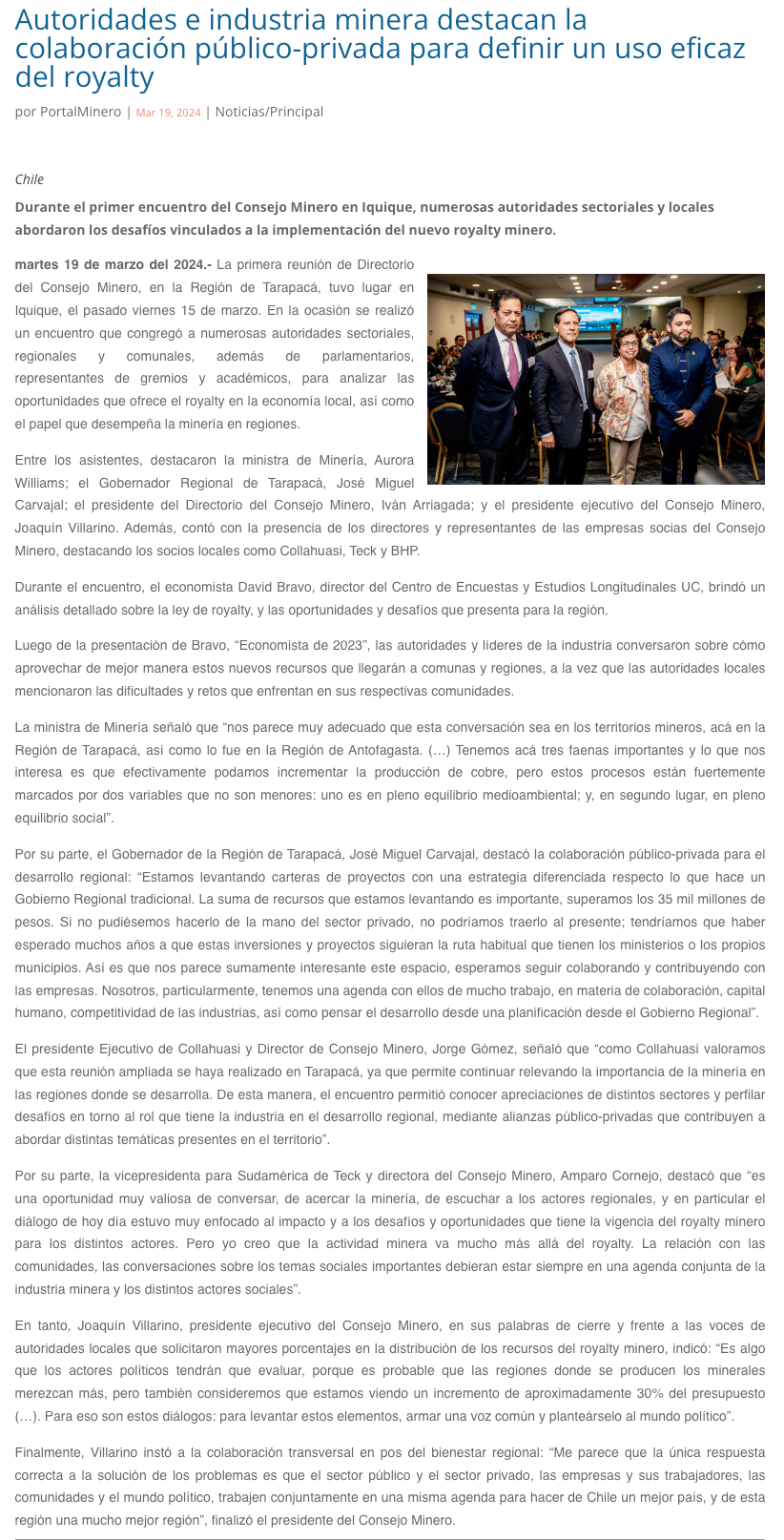 Autoridades e industria minera destacan la colaboración público-privada para definir un uso eficaz del royalty - (elsoldeiquique)
