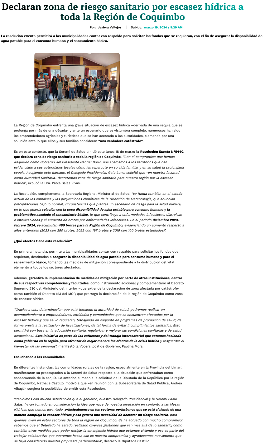 Declaran Zona de Riesgo Sanitario por escasez hídrica - (El Día)