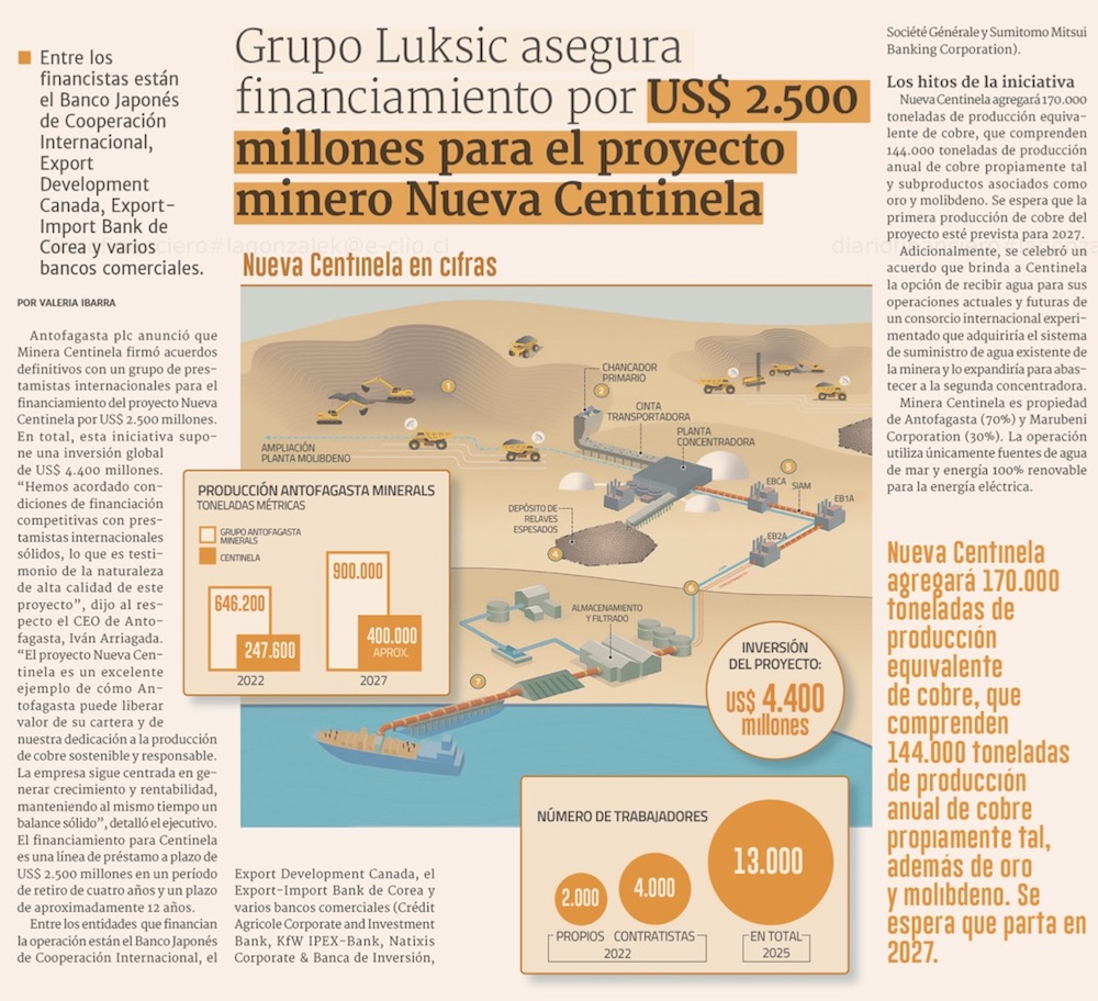 Antofagasta Minerals cierra financiamiento para Nueva Centinela por US$ 2.500 millones - (El Mercurio de Santiago)