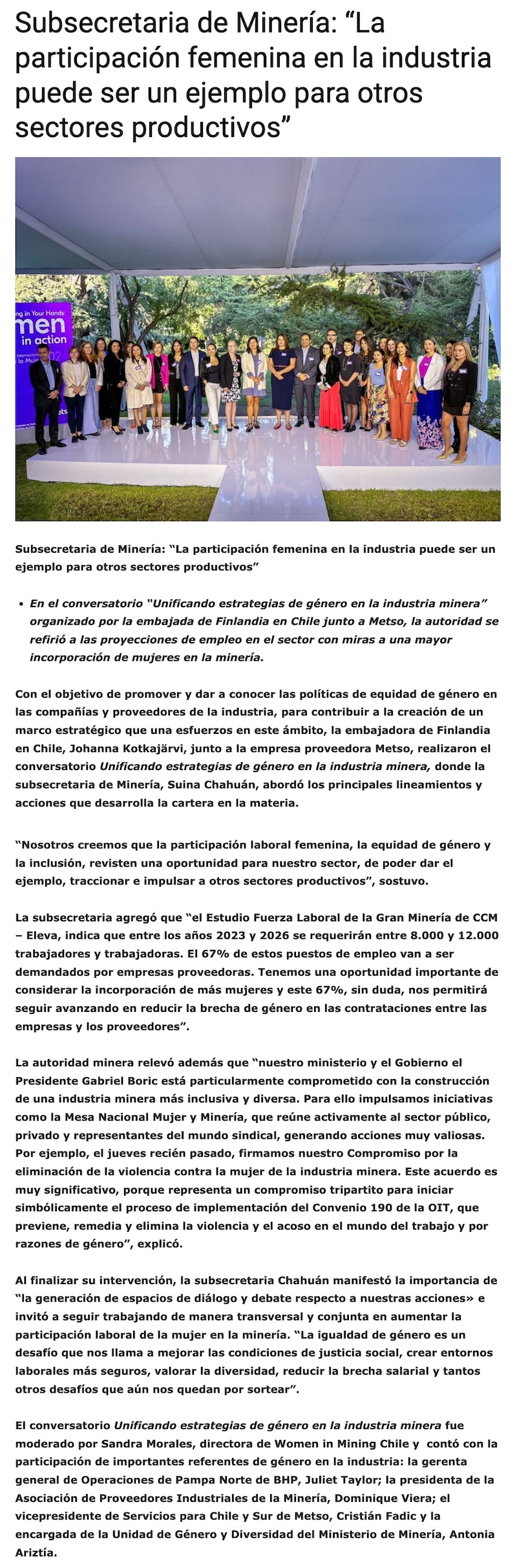 Subsecretaria de Minería: “La participación femenina en la industria puede ser un ejemplo para otros sectores productivos” - (mvcomunicaciones.cl)