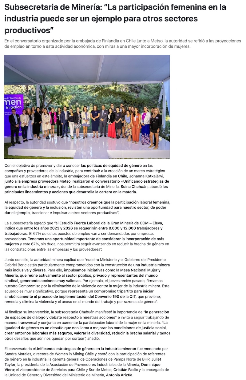 Subsecretaria de Minería: "La participación femenina en la industria puede ser un ejemplo para otros sectores productivos" - (informatemas.cl)