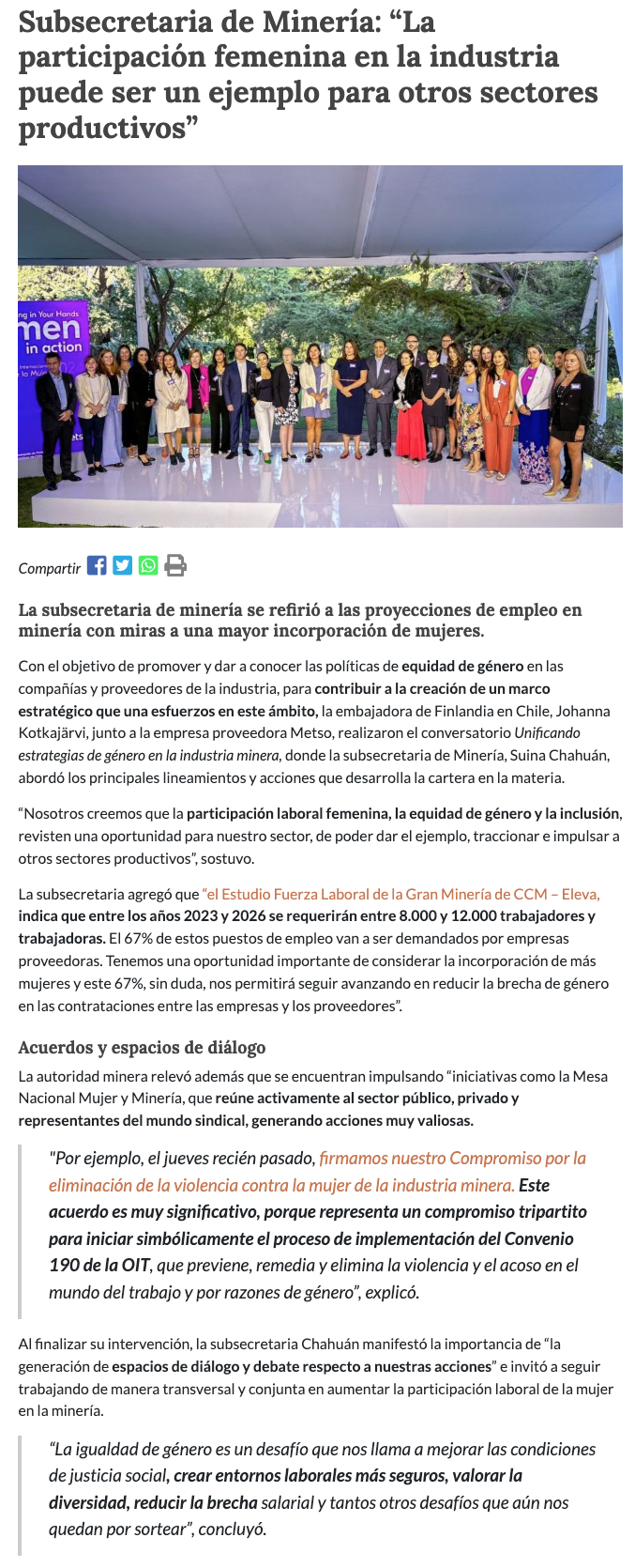 Subsecretaria de Minería: "La participación femenina en la industria puede ser un ejemplo para otros sectores productivos" - (informatemas.cl)