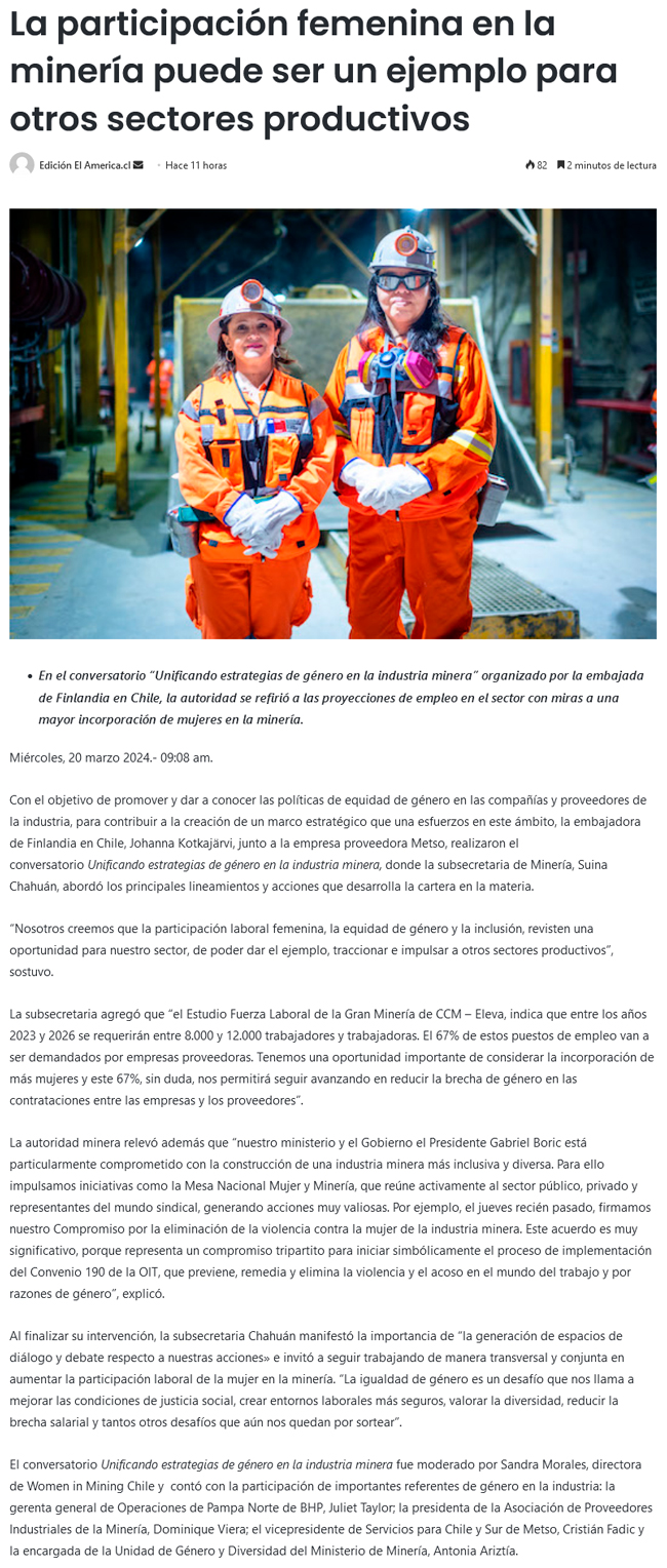 Subsecretaria de Minería: "La participación femenina en la industria puede ser un ejemplo para otros sectores productivos" - (informatemas.cl)