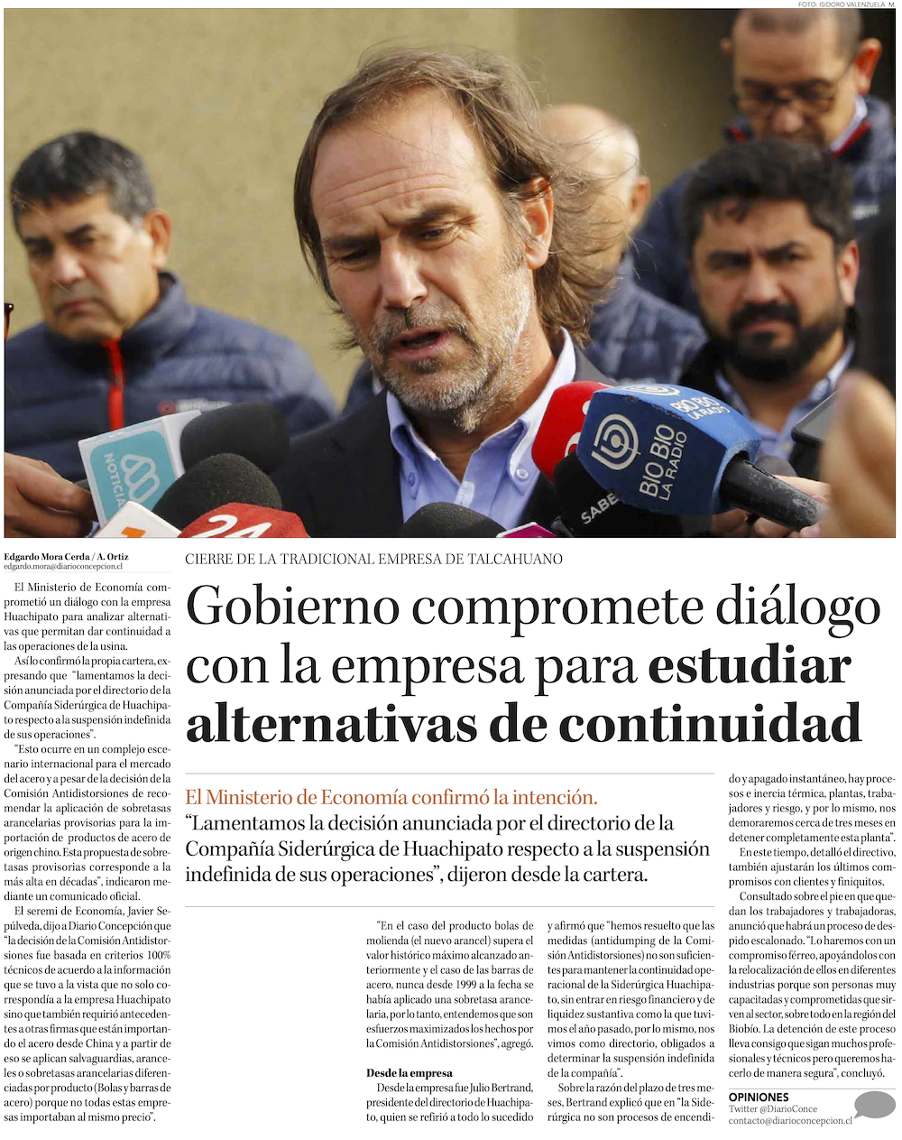 CAP anuncia cierre de Huachipato, pero lo condiciona a acciones que tome el Gobierno - (El Mercurio de Santiago)