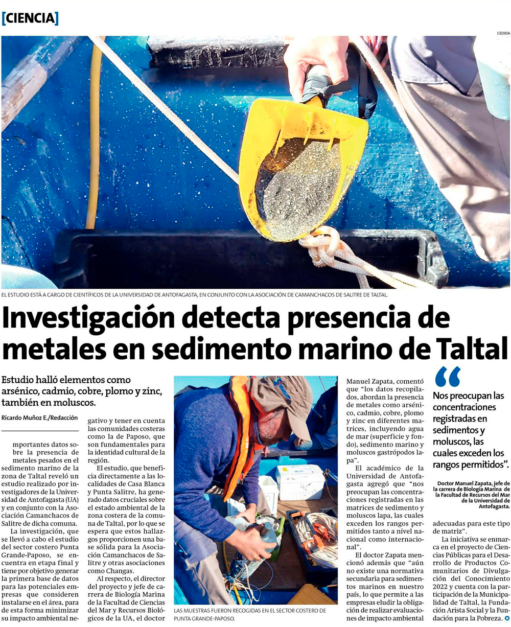 Investigación de la UA revela presencia de metales en sedimento marino de la costa de Taltal - (regionalista.cl)