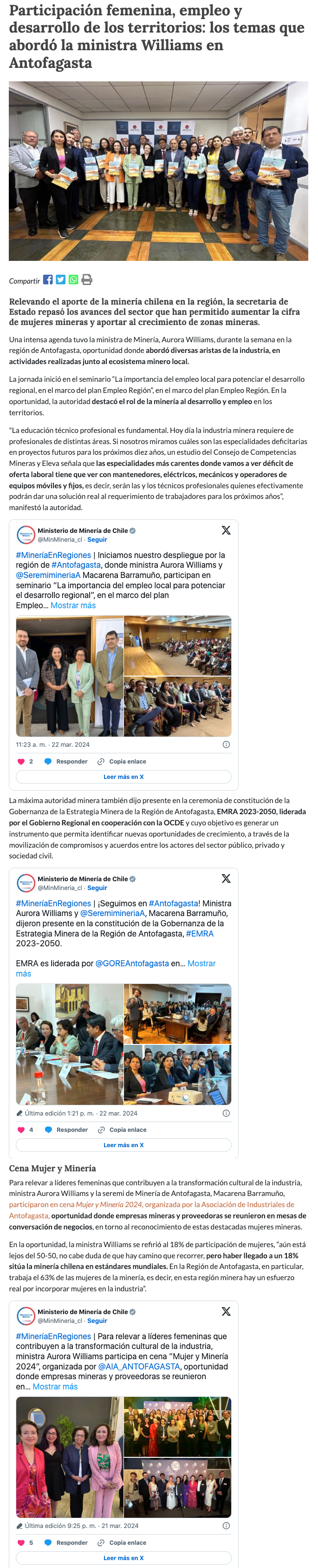 Participación femenina, empleo y desarrollo de los territorios: los temas que abordó la ministra Williams en Antofagasta - (portalminero)