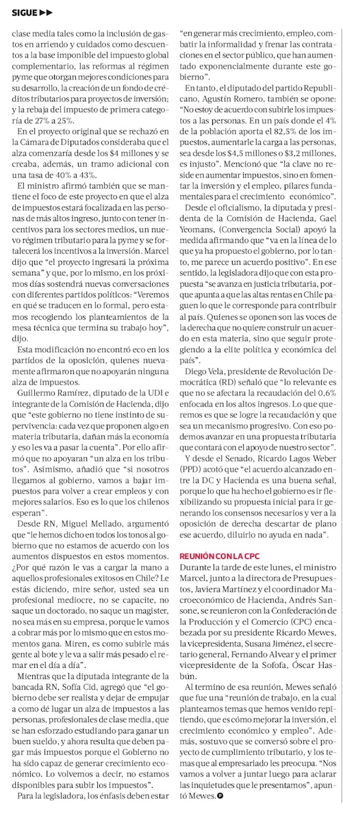 Hacienda pacta con la DC que impuesto personal suba desde los $4,5 millones, pero recibe portazo de la oposición - (El Mercurio de Santiago)