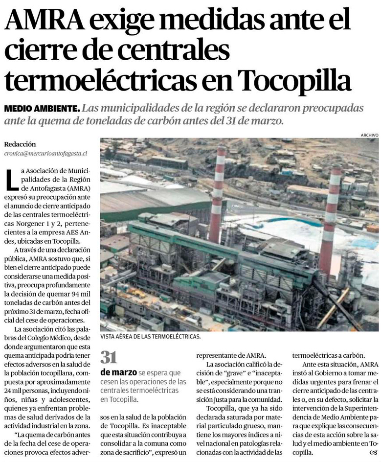 Asociación de Municipalidades de la región exige medidas ante el cierre de centrales termoeléctricas en Tocopilla - (soyantofagasta)