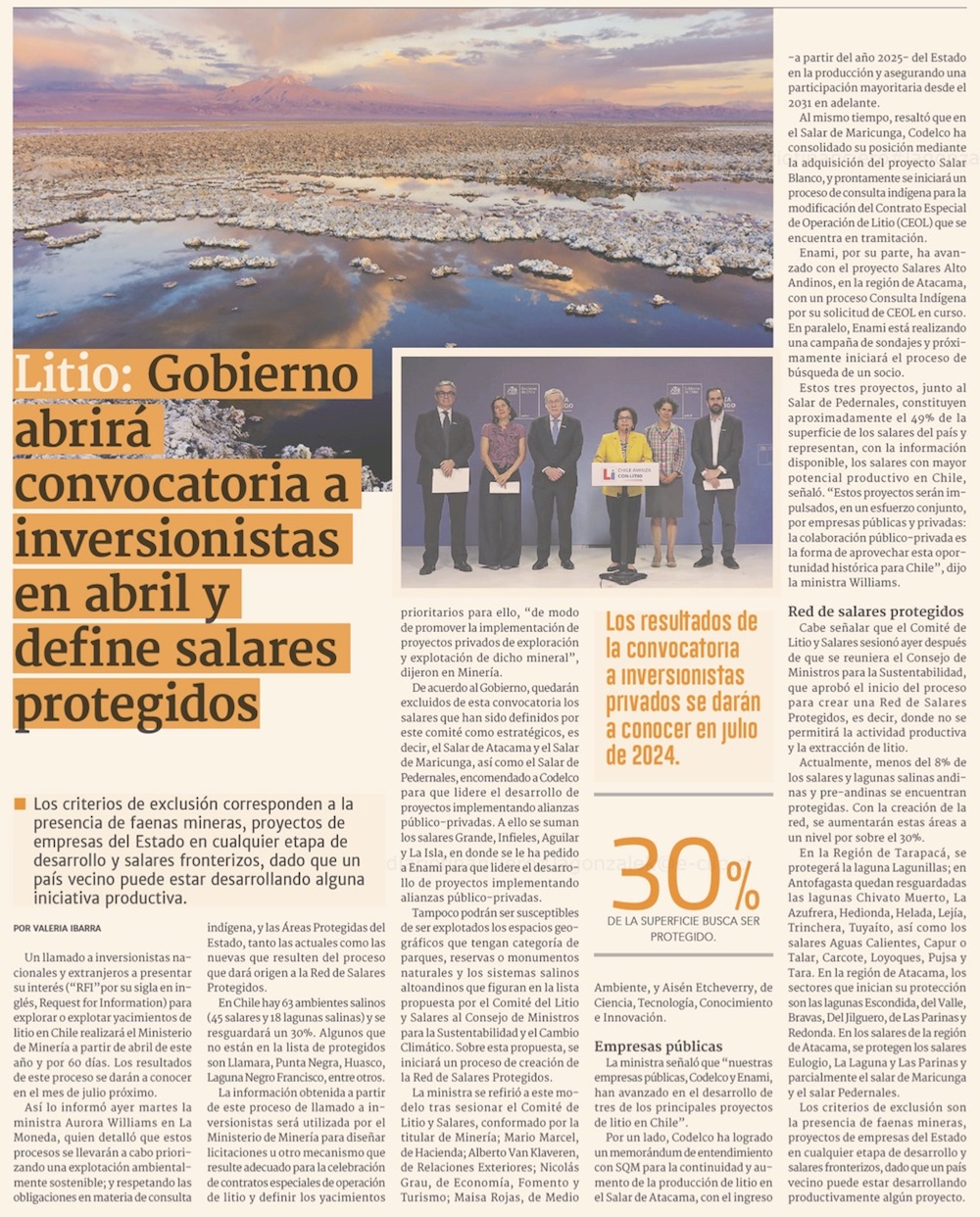 Litio: Gobierno abrirá convocatoria a inversionistas en abril y define salares protegidos - (DF Online)