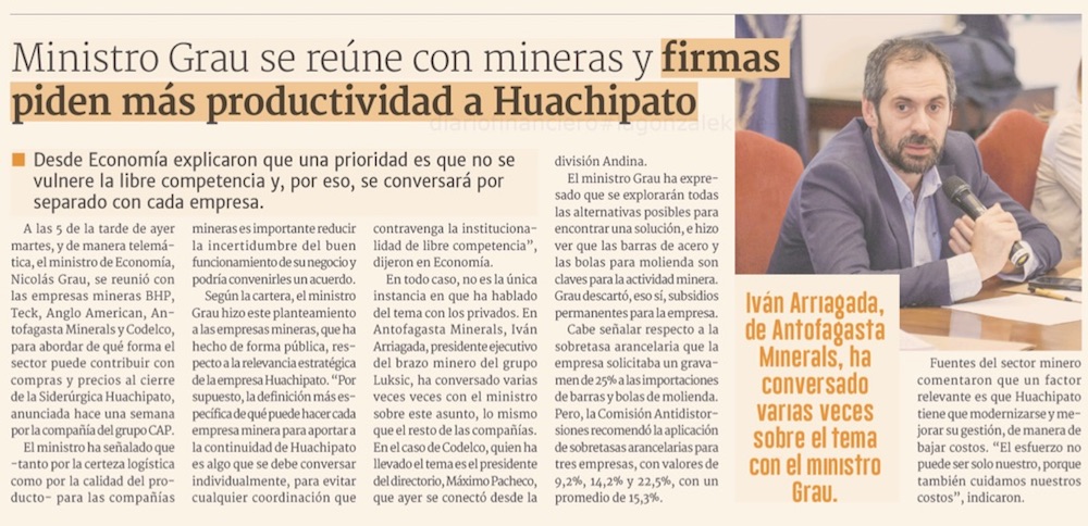 La hermética reunión de Grau con mineras locales por la situación de Huachipato - (El Mercurio de Santiago)