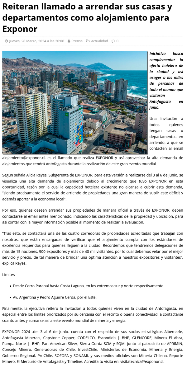 Reiteran llamado a arrendar sus casas y departamentos como alojamiento para Exponor - (regionesnoticias.cl)
