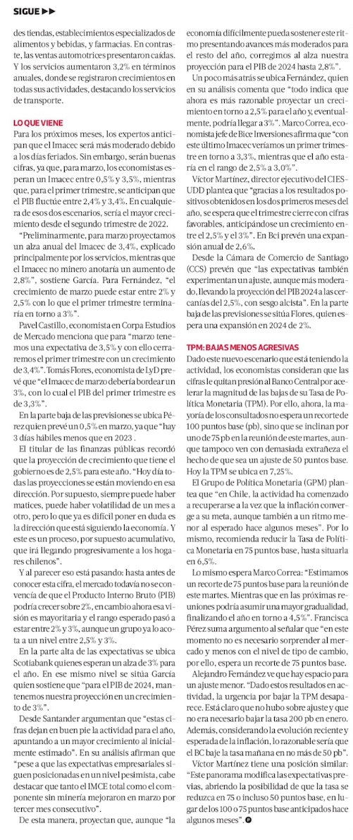 Economía da signos de despegue en febrero y parte del mercado se anima con crecimiento de hasta 3% para el año - (Diario Financiero)