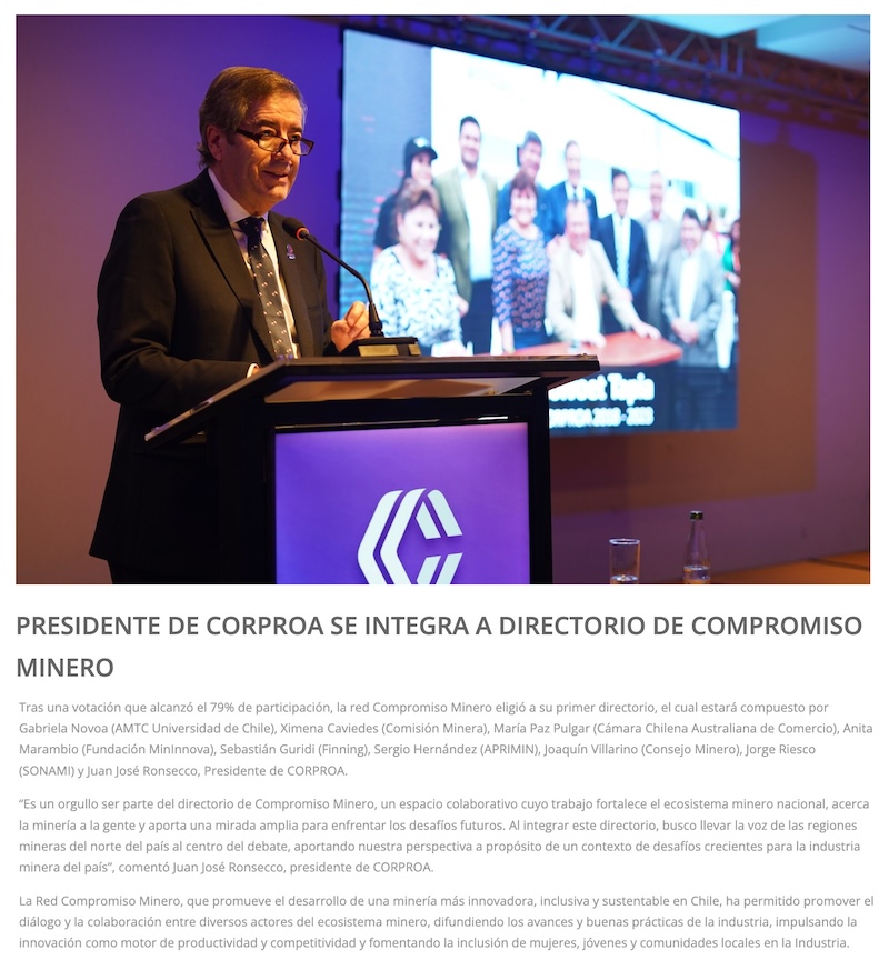 Presidente de CORPROA se integra a directorio de Compromiso Minero - (elzorronortino.cl)