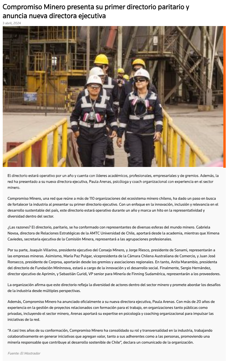 Red Compromiso Minero da a conocer su primer directorio electo - (ceinoticias.cl)