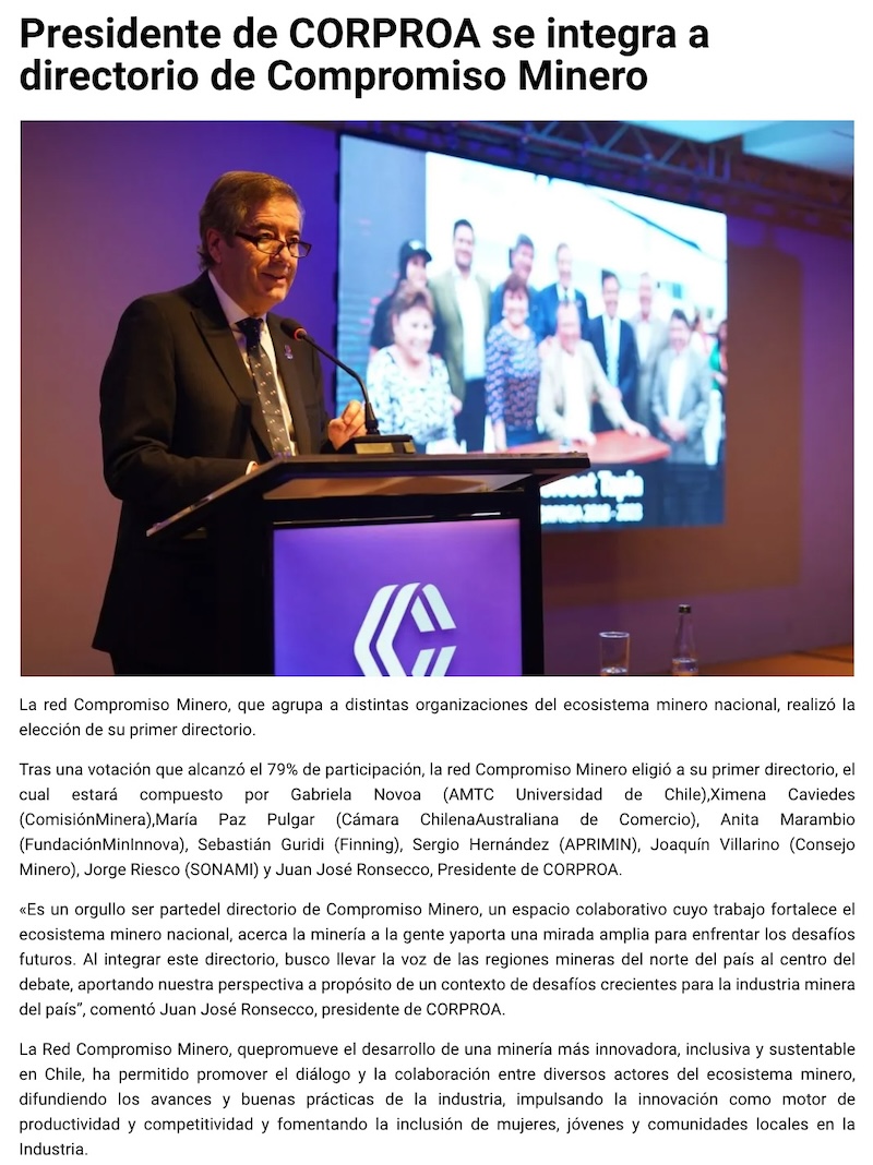 Presidente de Corproa se integra a directorio de Compromiso Minero - (noticierodelhuasco.cl)